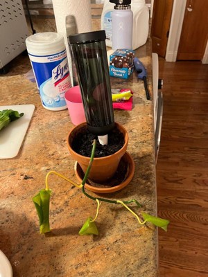 [This review was collected as part of a promotion.] This is a very easy to use plant watering stake. The lid is snug, but easy to remove. Then fill it, stick it into the plant pot, and forget it! However, I wish that the capacity for water was larger for my bigger plants, such as my 5ft tall monstera. Overall a solid product.