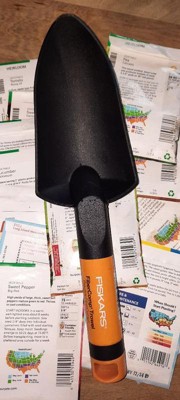 [This review was collected as part of a promotion.] This Fiskars Trowel is the perfect size to use in my raised garden beds! I love having a small handheld shovel that I can use to plant seeds and move plants around with that is just the right size. I keep it on the side of my garden bed for easy access to use whenever I need it!