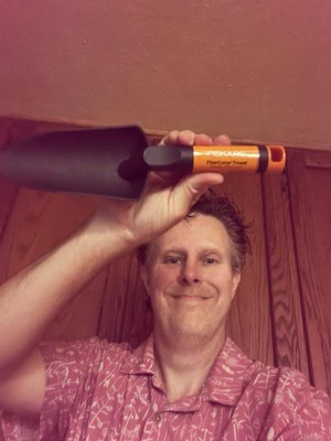 [This review was collected as part of a promotion.] I’m really happy with this Fiskars gardening trowel. It’s lightweight, so it doesn’t feel tiring to use, but it is still very sturdy. I have hard soil and this trowel doesn’t bend when digging, which is something I have had issues with in the past. The pointed, sharp blade cuts into the ground easily and makes planting faster. The handle feels comfortable in my hand and is easy to control. I also appreciate that it will not rust if I don’t clean it before putting it away or forget it in the rain. It feels like a well made, dependable tool.