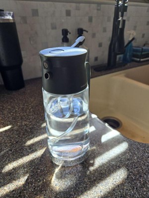 [This review was collected as part of a promotion.] Love that it has a glass bottle. You can feel the quality in this one and the product speaks for itself. Now I want the whole line of fiskars. I love when you can tell the quality of the item and the craftsmanship in every detail. I wish it came with instructions. It has two buttons that both say press. And I have still yet to figure out how the other one works