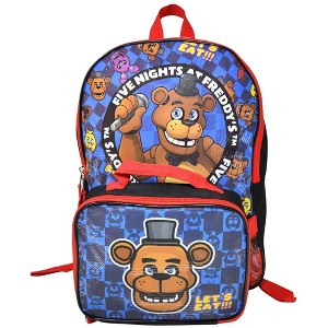 Five Nights at Freddy's 16" checkered Backpack for School with Rectangular Lunch Bag