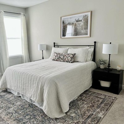 A: The sham has a windowpane pattern, offering a classic and timeless design.