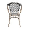 Product Name: Flash Furniture 2 Pack Marseille Indoor/Outdoor Commercial Bistro Stacking Chair with Arms, Black/White Textilene and Bamboo Aluminum Frame in LT Natural