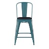 Product Name: Flash Furniture Carly Commercial Grade 24" High Kelly Blue-Teal Metal Indoor-Outdoor Counter Height Stool with Back with Black Poly Resin Wood Seat