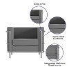 Your office reception space speaks to who you are as a company and this gray LeatherSoft upholstered chair with encasing frame makes quite a statement. This trendsetting piece features a straight arm design and a removable square seat cushion, all padded with 5" of foam for exceptional comfort. LeatherSoft is leather and polyurethane for added softness and durability. A stainless steel frame, accent bar enclosure and integrated legs give this chair added strength and a distinctive flair. Make a great impression on your clients, customers, and guests with this innovative contemporary chair. This progressive style chair brings comfort and trend-setting style to your waiting room, reception area or home. Additional Features: Foam Filled Cushions with CAL 117 Fire Retardant Foam, Exquisite Stainless Steel Accent Frame, LeatherSoft is leather and polyurethane for added Softness and Durability, Use as a standalone piece or pair with our sofa and loveseat