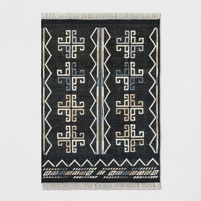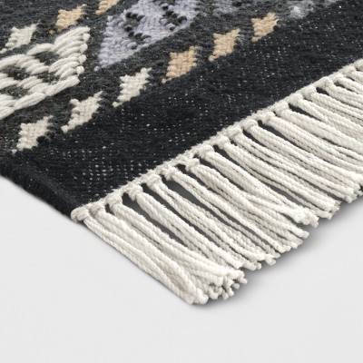 Bring a touch of global-inspired style to your home with this Flatweave Dhurrie Geometric Fringed Area Rug from Opalhouse™. This woven area rug features a bold and unique geometric pattern that creates a lively pop of style. It also has knotted fringe accents along the short sides of the rug for a touch of texture. With a no-pile height that makes cleaning a breeze, this global woven area rug is the perfect way to bring functional style into any room in your home.