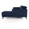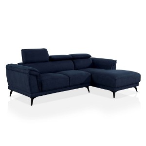 Clean lines and plush coil spring seating invite relaxation in this mid-century modern sectional, featuring pillow top-style adjustable headrests and armrests and a taut rolled back with elegant and understated curves. A tempting right chaise extends to offer lounging or ample seating when guests are over. Elevated by flared steel legs and wrapped in a soft fabric, this sectional also lends a modern touch to the space.