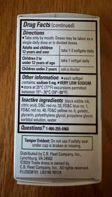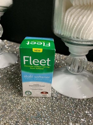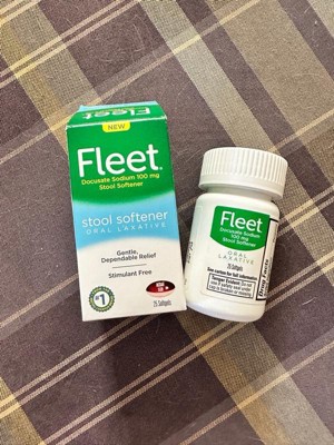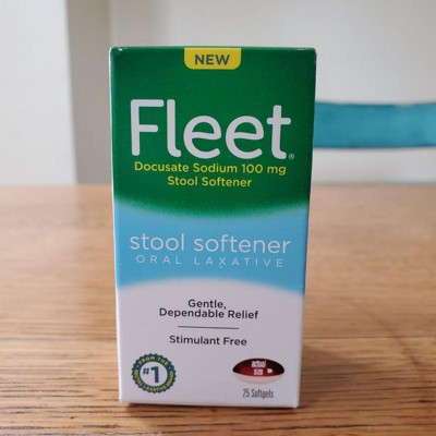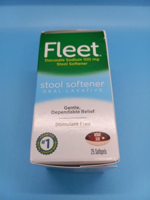 - Each box of Fleet Oral Laxative Stool Softener contains 25 docusate sodium 100mg softgels