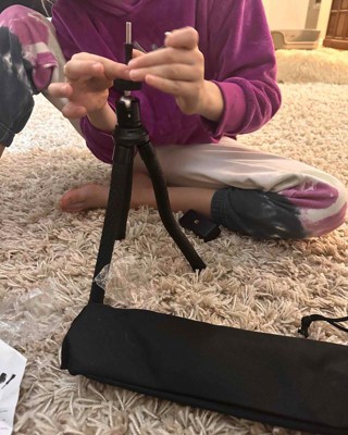 [This review was collected as part of a promotion.] Great little tripod perfect for blogging and pictures. This portable tripod fold neatly into a nice storage bag which you can carry in your purse or book bag. This was a great price and shipped quickly to us. We are already using it to take family photos I received an incentive to write this review.