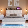 Floating Bed Frame with Charging Station, Upholstered Platform Bed