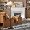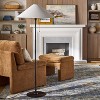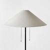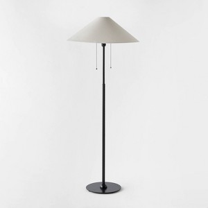 Transform your lighting with this Floor Lamp from Threshold™ designed with Studio McGee. Standing 57.75 inches high, this sleek floor lamp features a white cotton fabric shade in an empire shape atop a black metal pole body with a flat disc base for a contemporary look. The convenient dual pull-chain switches offer one-way on/off control for easy operation, and the six-foot cord offers flexible placement.