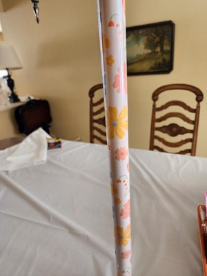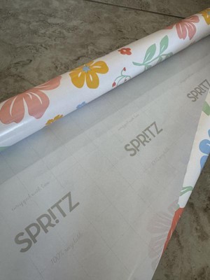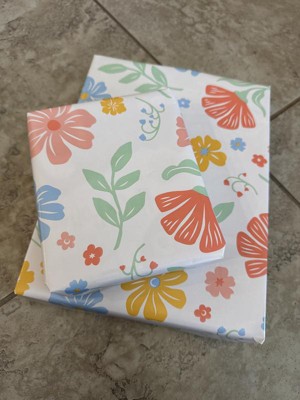 A: The wrapping paper features a beautiful floral design on a cream background.