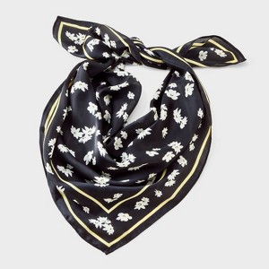 Put the perfect finishing touch on just about any outfit in your wardrobe with this Floral Pattern Square Scarf from Universal Thread™. This square scarf is adorned with white floral pattern on a black backdrop with yellow borders for an eye-catching look. Made of recycled polyester fabric with a single-layered construction, this scarf gives your outfit a pop of personality while helping keep your neck warm.