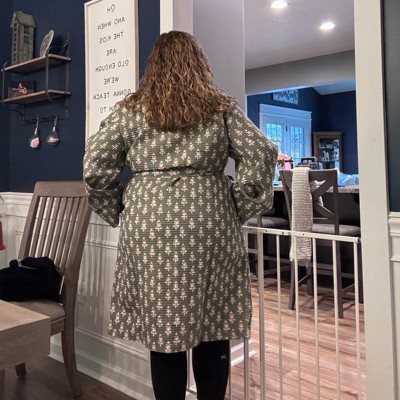 The print and texture was exactly what I was going for in this robe. I loved the generous fit when I tried it on - however, when I washed it on warm and tumbled on ultra low prior to actually wearing it for use, it shrunk significantly. I wish I could return it for a larger size.