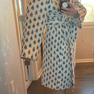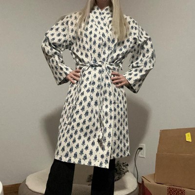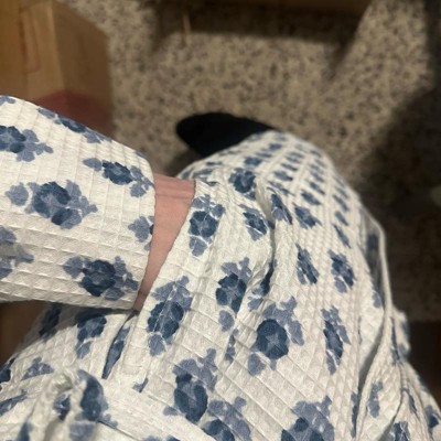 S/M Floral Waffle Bath Robe Blue/White - Threshold™