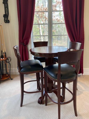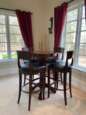 This pub table has received high praise for its solid construction, beautiful design, and ease of assembly. Guests appreciate its perfect height for bar stools and the rich finish that enhances their home decor. Many found it surprisingly sturdy and well-made for the price, making it a great addition to any space. While some noted minor color discrepancies, the overall satisfaction with the table's quality and aesthetic appeal is evident.