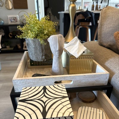A: Hi Disappointed Grandma - Thank you for reaching out to us with your query about the Fluted Brass Bathroom Tissue Box Cover Antique Finish - Hearth & Hand™ with Magnolia. The Tissue Box comes with a smooth antique finish which ensures it does not scratch the layer it is placed on. I hope this information was helpful. Happy Shopping! - Josh