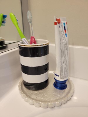 The is such a cute tray. The scalloped edges add the cute detail. This tray is perfect in any room. Great to place jewelry on in the bathroom, a great tray to place a candle on, would be great by the sink with a soap dispenser and lotion. The possibilities are endless!