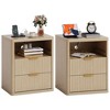 Fluted Nightstand w/ Charging Station, Mid Century Modern Bedside Table with Drawers & Open Shelf