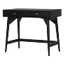 The Flynn Mini Desk in Chestnut finish combines functionality with a compact design, ideal for smaller spaces. This desk features ball-bearing metal drawer glides and English dovetail drawer construction, ensuring smooth and durable use. With two felt-lined drawers, your belongings will be safely stored, while light assembly of the legs and support bars makes setup a breeze.