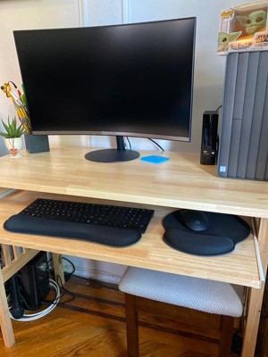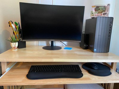 Pretty great product. I ordered this desk through the Target app and it came to my house just two days later. It took roughly 15 mins to set up and the process was fairly intuitive (note: I skipped the wall hanging step). The upper desk surface is large enough to house my laptop and 24” desktop monitor with other random items scattered about. The keyboard dock is sturdier than I anticipated. Just keep little ones off and be cognizant of how much pressure you apply - no half sits/leaning. I’m 5’9” and just over 130lbs so it’s generally fine for me but TLC is key here, I think. A few spots across both surfaces could use additional sanding but not to the point where I’m worried about splinters. Overall, I feel it’s a great value for the money and if cared for properly, a desk that’ll last you a long while. -A WFH millennial on a budget