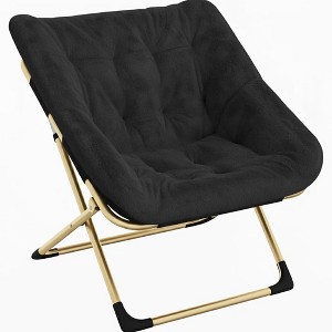 Folding Moon Type Chair for Adults,Comfortable Lounge Chair with Steel Structure and Soft Synthetic Fur,No Assembly,for Living Room,Bedroom,Black