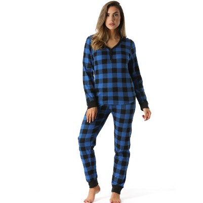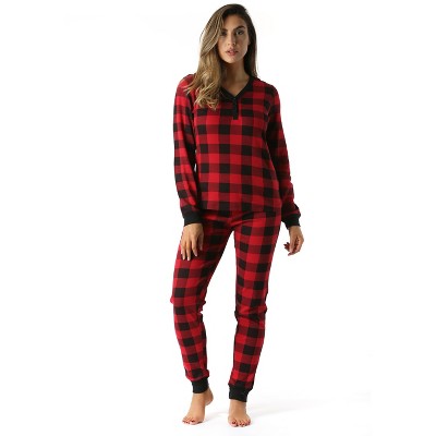 • STAY WARM IN STYLE: A lovely 3-button Henley thermal top combines with beautifully-fitting jogger pants all designed in eye-catching buffalo plaid to create womens thermal underwear that oozes effortless style. The waffle knit thermal bottoms have 2 mock buttons for a pretty touch and the buffalo check thermal set is available in multiple colorway options to match your taste.