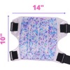At 14" X 10", it is the perfect size for your hip or shoulder. The four section design allows it to fold, making the size flexible to fit virtually any body part. Two sets of adjustable elastic straps ensure it stays in place for a secure fit. For hip placement, fasten one strap around your waist, and the other around your hip. For shoulder placement- fasten one strap around your upper shoulder and the other around your bicep. Simply secure the fastener closures for comfortable and reliable therapy while on the go.