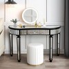 - Elegant Crescent Design: This vanity desk features a stylish half-moon silhouette with fluted glass panels, creating a sophisticated focal point while enhancing any room's space and light.