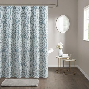 FONTOI Shower Curtain Luxury Jacquard Textured Damask Design for Bathroom Decor, Aqua Silver, 72"*72"*0.13"