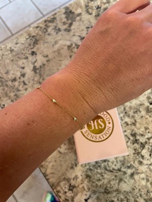 [This review was collected as part of a promotion.] Overall this bracelet is very cute. It’s very dainty which I like and gold, which is another plus. It seems to be good quality even with being dainty. The little hearts on it so cute and I think it could make the perfect gift for someone.