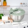 Versatile Functionality: This 7-in-1 salad spinner dries greens and includes 5 interchangeable cutting blades for various vegetable preparations, alongside an egg yolk white separator.