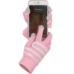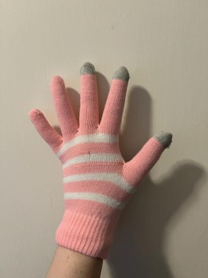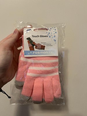 Fosmon Touchscreen Gloves, Winter Knit Gloves with Touch screen Fingers for Men & Women, Superb Accuracy on 3 Conductive Fingertips - Pink/White