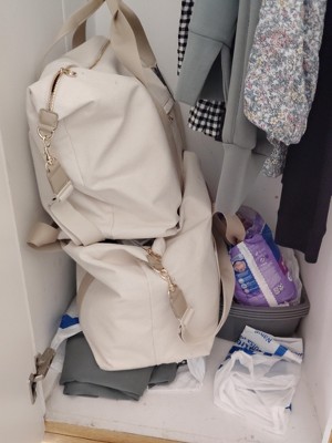 Absolutely in love! Bought this bag so I can use it for my trip in November and I can literally fit a whole hard sized carry-on bag’s worth of items, may be more! I love the style, the color and the strap in the back for the carry-on handle.