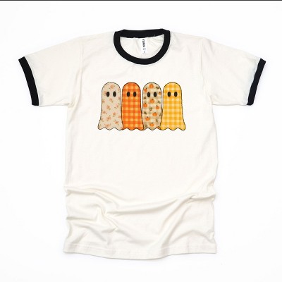 Product Name: Four Ghosts Checkered Quilted Printed - Womens Ringer Tee