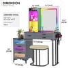 - This vanity features a smart RGB lighting system with a 24-color adjustable LED mirror and three light modes (warm, cool, and natural), allowing you to create the perfect makeup look or ambiance for any setting.