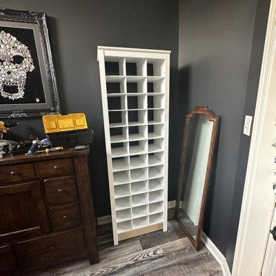 - SHOE CUBBY: Measuring 13"D x 23.5"W x 72.5"H, this shoe organizer cabinet maximizes storage with its 36 shoe cubbies. Each shoe cubby measures at 11.75"D x 7"W x 5.25"H, creating an efficient entryway shoe storage system.