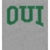 - CUSTOM DESIGNED: This custom-designed apparel features a big, green graphic of the French word "Oui" - an eye-catching image that has been professionally printed for long-lasting print quality.