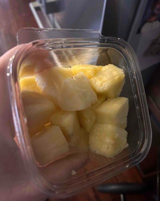 [This review was collected as part of a promotion.] I usually do not purchase pre cut food, however, I must say that it is very convenient to just grab and go. The pineapple chunks were just right, sweet and in easy to eat pieces. Definitely easier than cutting it up yourself, however you pay for the convenience. I received an incentive to write this review.