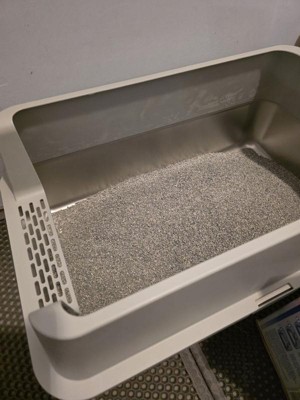 [This review was collected as part of a promotion.] I chose this litter mainly because it’s unscented, but there is still a slight residual smell – not strong, but noticeable if you are sensitive to fragrances. The texture is fine and small-grained. It clumps well and easy to scoop, doesn’t produce a lot of dust, which is a plus, but it does track very easily. The box has a convenient handle, but it’s very heavy. I wish the litter was more lightweight– that would make it much easier to use. It does the job, but nothing stands out, you can find similar quality options that are cheaper. A decent, middle-of-the-road product.