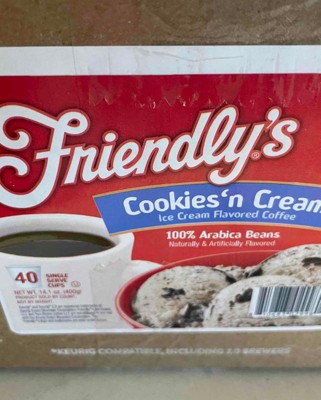 - If you enjoy Flavored Coffee, you’ll love this freshly brewed Friendly's Cookies & Cream Flavored Coffee. Extra fresh and filter brewed, using only the highest quality 100 percent premium Arabica coffee beans.