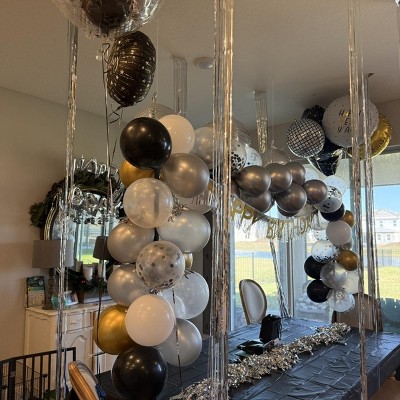 Sliver Fringe backdrop was perfect for the NYE Birthday Party I hosted.