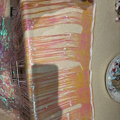 very cute, love that it comes with its own sticker line. note this is LONG (top to bottom), not wide at all. you will likely need a chair or something so keep that in mind. you also may need to get more than you think. the material is very cute and changes color slightly depending on surroundings and light. would get again.