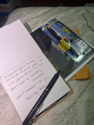 [This review was collected as part of a promotion.] I love pilot erasable products. This one writes beautifully but unfortunately doesn’t erase well. The outline of the words remains very visible. I guess technically the ink erases beautifully and maybe the writing itself engraves the paper. Either way - it writes beautifully but will show your mistakes.