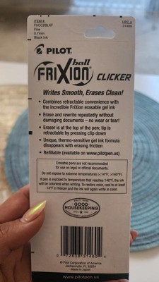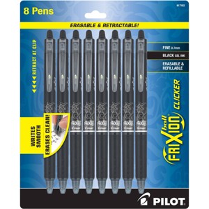 - Includes 8 Fine Point (0.7mm) Pilot FriXion Clicker Erasable black gel ink pens