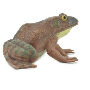 This Frog, 5" figure includes hand painted features to give it realistic details that are true to natural anatomy. This figure is considered a museum quality replica. Highest Quality Natural Rubber. The American bullfrog (Lithobates catesbeianus), often simply known as the bullfrog in Canada and the United States, is a large true frog native to eastern North America. It typically inhabits large permanent water bodies such as swamps, ponds, and lakes. Bullfrogs can also be found in manmade habitats such as pools, koi ponds, canals, ditches and culverts. The bullfrog gets its name from the sound the male makes during the breeding season, which sounds similar to a bull bellowing. The bullfrog is large and is commonly eaten throughout its range, especially in the southern United States where they are plentiful. Their presence as a food source has led to bullfrogs being distributed around the world outside of their native range. Bullfrogs have been introduced into the Western United States, South America, Western Europe, China, Japan, and southeast Asia. In these places they are invasive species due to their voracious appetite and the large number of eggs they produce, having a negative effect on native amphibians and other fauna. Bullfrogs are very skittish which makes capture difficult and so they often become established. Other than for food, bullfrogs are also used for dissection in science classes. Albino bullfrogs are sometimes kept as pets, and bullfrog tadpoles are often sold at pond or fish stores. The bullfrog is native to eastern North America. Its natural range extends from the Atlantic Coast, north to Newfoundland, to as far west as Oklahoma and Kansas. It is not found on offshore islands near Cape Cod and is largely absent from Florida, Colorado, Nebraska, South Dakota, and Minnesota. It has been introduced into Nantucket island, Arizona, Utah, other parts of Colorado and Nebraska, Nevada, California, Oregon, Washington, and Hawaii. In these states, it is considered to be an invasive species and concern exists that it may outcompete native species of amphibians and upset the ecological balance. It is very common on the West Coast, especially in California, where it is believed to pose a threat to the California red-legged frog, and is considered to be a factor in the decline of that vulnerable species. Bullfrogs have been found to feed on the young of the California endemic giant garter snake, a threatened species. In early 2023, the Utah Department of Natural Resources began tweeting tips on how to catch and cook bullfrogs in an effort to encourage residents to help control the growing population by catching the invasive frogs for food. Thanks for visiting Collectible Wildlife Gifts, the leading provider of high-quality, lifelike animal Designs and gifts! We work hard to ensure we have a diverse range of products. Each product is inspected for their quality craftsmanship. Whether you're searching for a great gift or seeking educational designs for displays, we€™ve got you covered. At Collectible Wildlife Gifts, our products appeal to a wide range of customers, including family, friends, and educators. Our products are trusted and used by professional organizations as well including aquariums, zoos, and movie studios. Our extensive line of products boasts everything from plush sharks to educational animal growth cycles. Our products bring joy to recipients, and serve as valuable educational resources, sparking curiosity and fostering learning. Discover the wonders of the natural world with Collectible Wildlife Gifts. Browse our collection today!