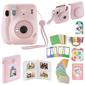Value accessory bundle. Includes the famous Fujifilm Instax Mini 11 Camera (color your choice) with a matching Camera Case to keep the camera protected. 20 Fujifilm Instax Films so you can use your brand new camera right away! Photo Album, perfectly sized for the instant prints. Many more accessories including frames to hang and decorate you photos, stickers, close up color lenses, and camera sticker for added color. The newly updated Fujifilm instax Mini Camera 11 features a slim body with newest design. Two shutter buttons are included in the box, one jewel and one glow in the dark button! Automatic Exposure-The Mini 11 automatically selects the shutter speed in any environment. Mini 11 Captures bright backgrounds and bright subjects even in dark scenes! Enjoy bright photos in the dark or in the sun. Selfie-time! The mini 11 has built in macro mode and selfie mirror for the perfect selfie. you don't need a close up lens attachment, just pull out the lens barrel until the selfie Mode mark appears! Close up lenses included in the bundle either way! Parties, birthdays anniversaries, carnivals or gifts... all are times to use the Fujifilm Instax Camera, You will not regret the Mini 11 buy. The most valued gift bundle for the best price!
