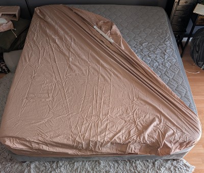 PROS: The sheets are a gorgeous green. They seem like they’ll hold up well to wash and wear. CONS: They are noisy and not very soft, even after washing. Hopefully they’ll soften up with use. They’re also quite warm.