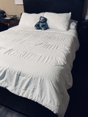 [This review was collected as part of a promotion.] I absolutely love this bedding set!! It’s so soft and fluffy and has a modern look to it when our bed is made. The sheets are buttery soft as well as the matching pillow cases. It has held up well even during washing and drying. It still looks great, feels great, and keeps me warm. I am still able to enjoy it in the summer time!