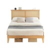 Rattan Bed Frame with Headboard, Boho Platform Bed with App-Controlled Lights & Under-Bed Storage, No Box Spring Needed, Oak